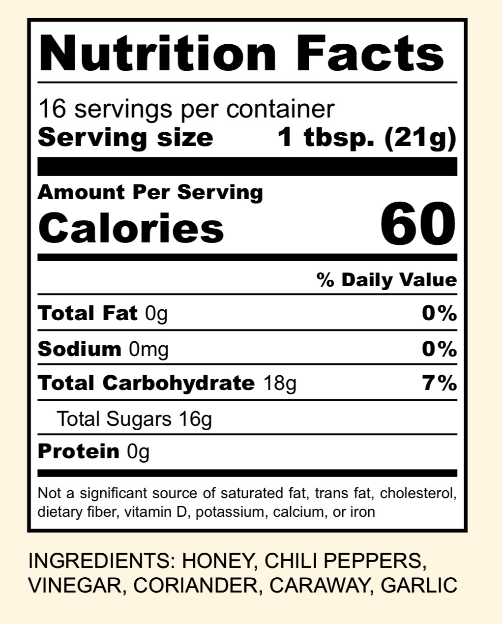 "Made with the finest locally-sourced honey infused with the aromatic spices of artisanal harissa, the honey can be added to dishes, tea, and even cocktails!"